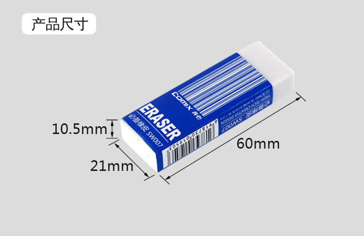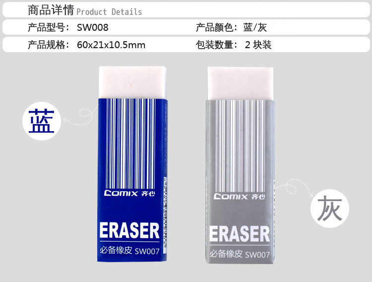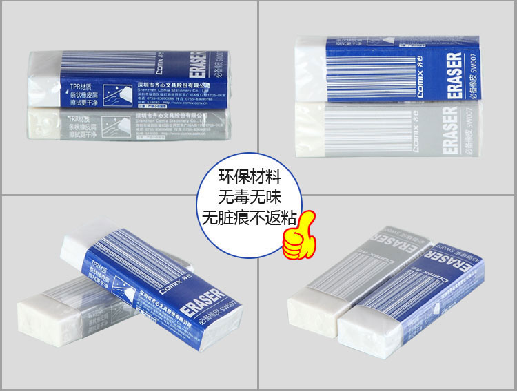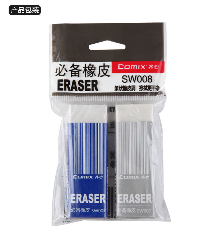 商品名称:齐心 SW008 学生橡皮 两块吊挂装商品编号:1772基本单位:袋箱包装量:480