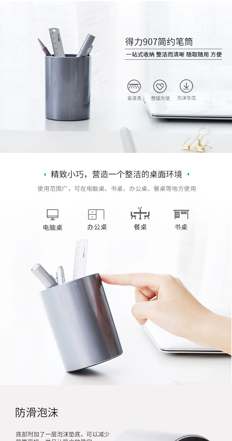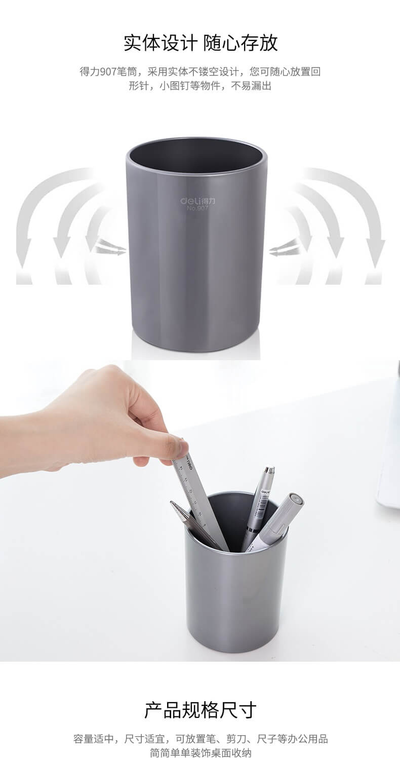 商品名称:得力(deli) 907 笔筒 办公商务笔插 简约大方笔座 办公用品 笔类收纳 颜色随机商品编号:1985基本单位:箱包装量:0