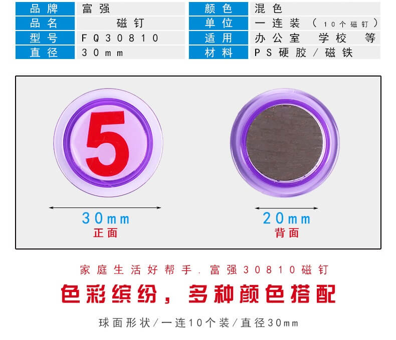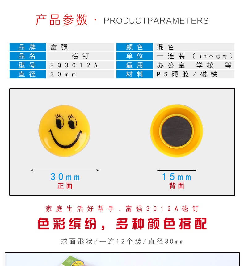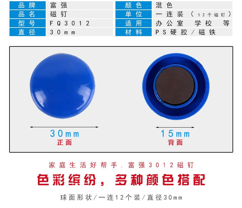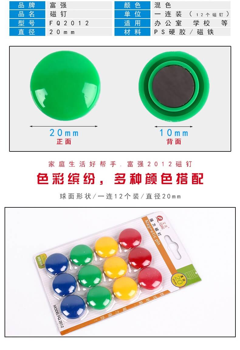 商品名称:富强 磁铁 2012 20mm商品编号:3325基本单位:排箱包装量:0