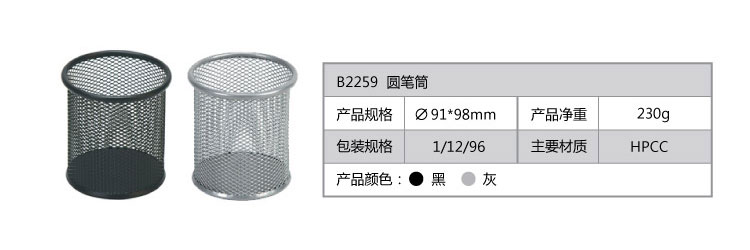 商品名称:齐心 B2259 耐用铁网圆笔筒商品编号:483基本单位:个箱包装量:96