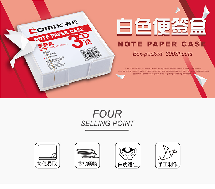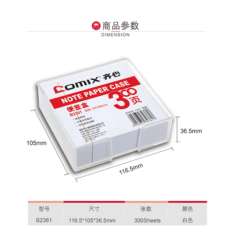 商品名称:齐心 B2361 简便易取便签盒 配纸107*96mm商品编号:494基本单位:盒箱包装量:72