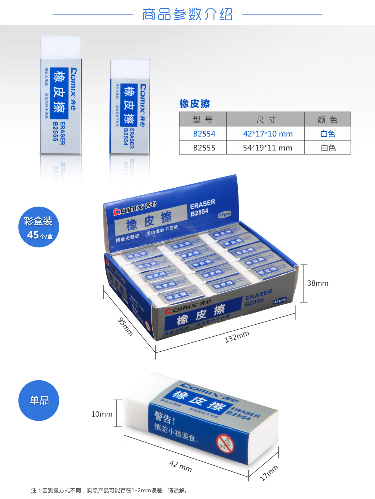 商品名称:齐心 B2554 橡皮擦商品编号:536基本单位:块箱包装量:1440