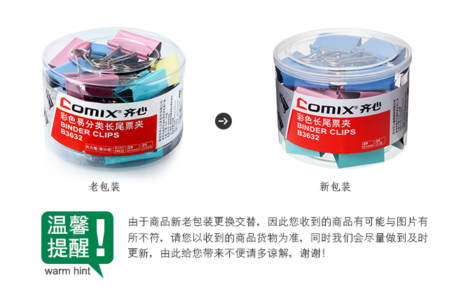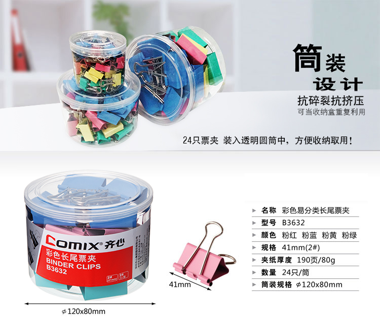 商品名称:齐心 B3632长尾票夹 2# 41mm 24只/筒商品编号:713基本单位:筒箱包装量:36